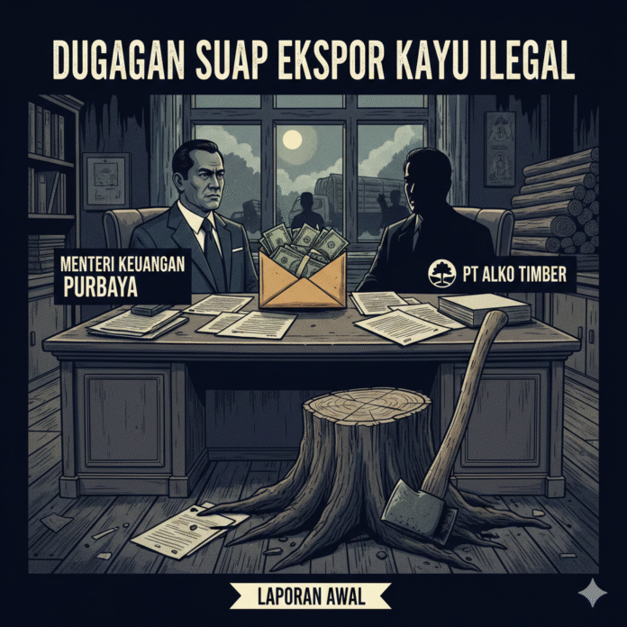 – Sebuah laporan dugaan adanya aliran dana dari aktivitas ekspor kayu ilegal yang diduga melibatkan perusahaan PT Alko Timber dan menyeret nama Menteri Keuangan Purbaya menjadi perbincangan di Papua Barat Daya. Informasi tersebut masih bersifat awal dan tengah dikonfirmasi oleh sejumlah pihak terkait.