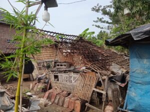 ” Waktu itu hujan angin, tiba-tiba rumah miring ke kanan dan bruk…genteng rumah pada jatuh, maka kami segera bergegas keluar menyelamatkan diri”, katanya menjelaskan kepada wartawan detikjatim.id hari minggu 24/4/22.