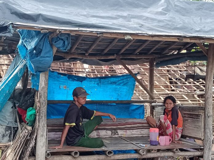 Sejak hari Jumat lalu (22/04/2022) , Bapak Karija (57 dan istri ibu Kania (56) tinggal di ” Jondol ,” ( bangunan semacam pos ronda yg terbuat dari bambu) di dusun II RT 02/RW 03. Blok Rancang. Desa Pegagan Lor , Kec. Kapetakan, Kab. Cirebon