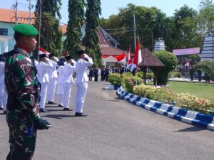 Upacara tersebut diikuti pasukan TNI, Polri, Satpol PP, Dishub, BPBD, ASN, Pramuka, Pelajar SMA dan SMP diiringi Marching Band Gita Bahari Kabupaten Sampang.