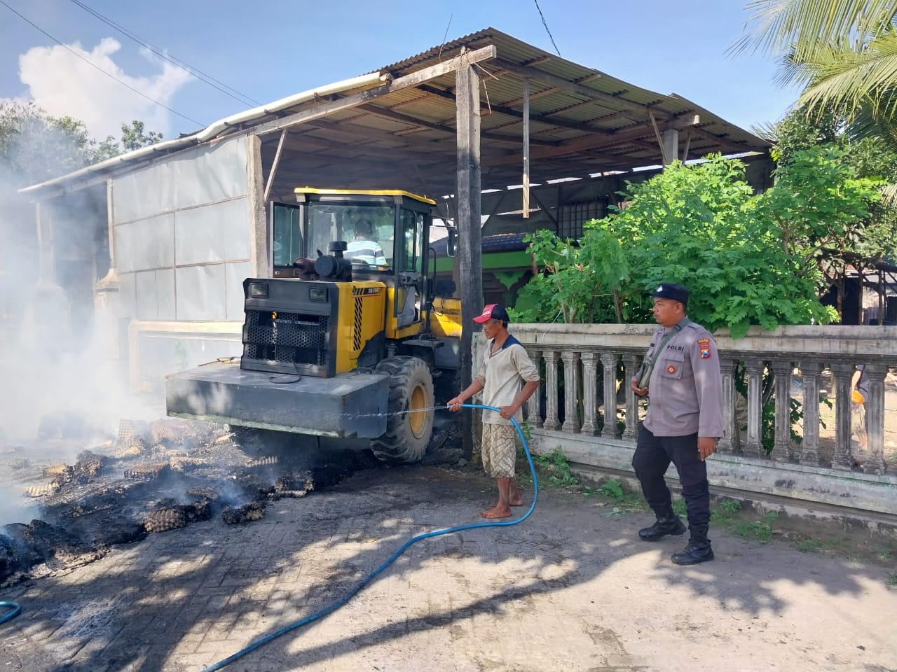 Mengetahui hal tersebut, petugas segera mendatangi lokasi kejadian dan mendapati adanya kebakaran di halaman rumah sekaligus gudang milik Sdr. Badrus. Saat kejadian, pemilik rumah diketahui sedang melaksanakan salat Zuhur.